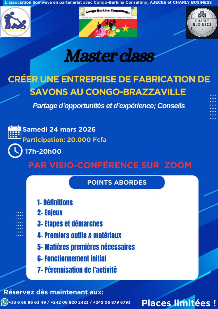 Congo-Burkina Consulting et l'association SOMWAYA Co-organisent en partenariat avec INVESTIRAUBURKINA.NET, deux ateliers sur les opportunités d'investissements au Congo.