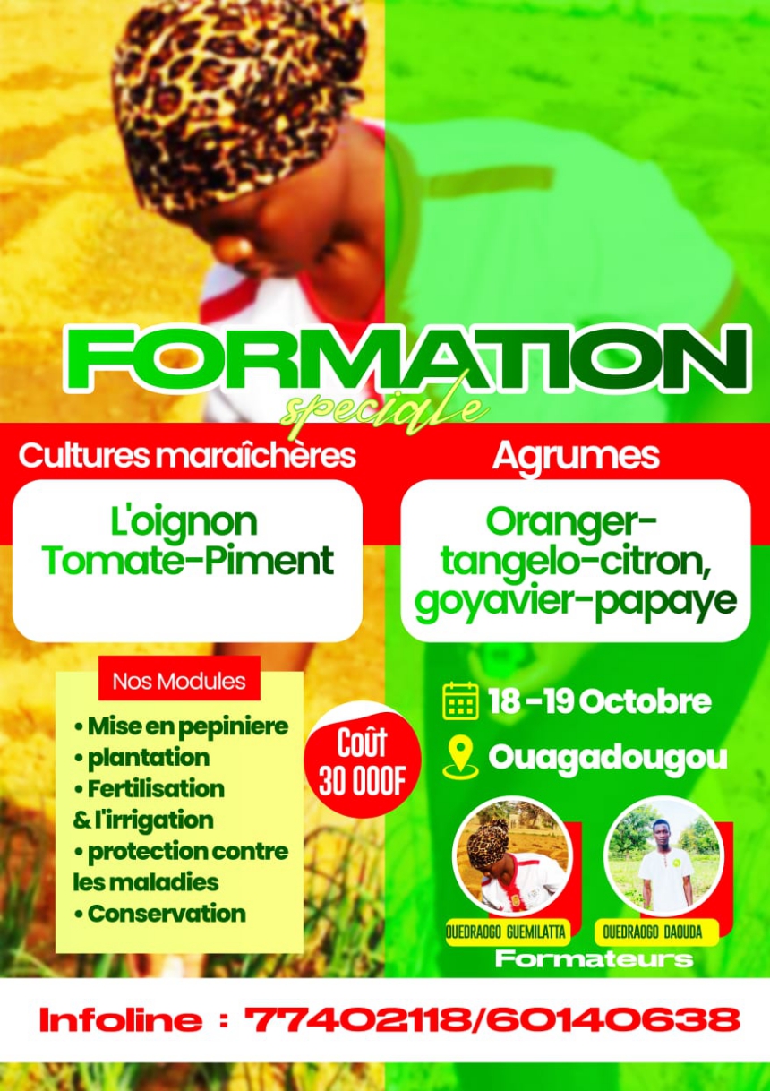 Lieu : Ouagadougou, Bobo-Dioulasso, Koudougou...